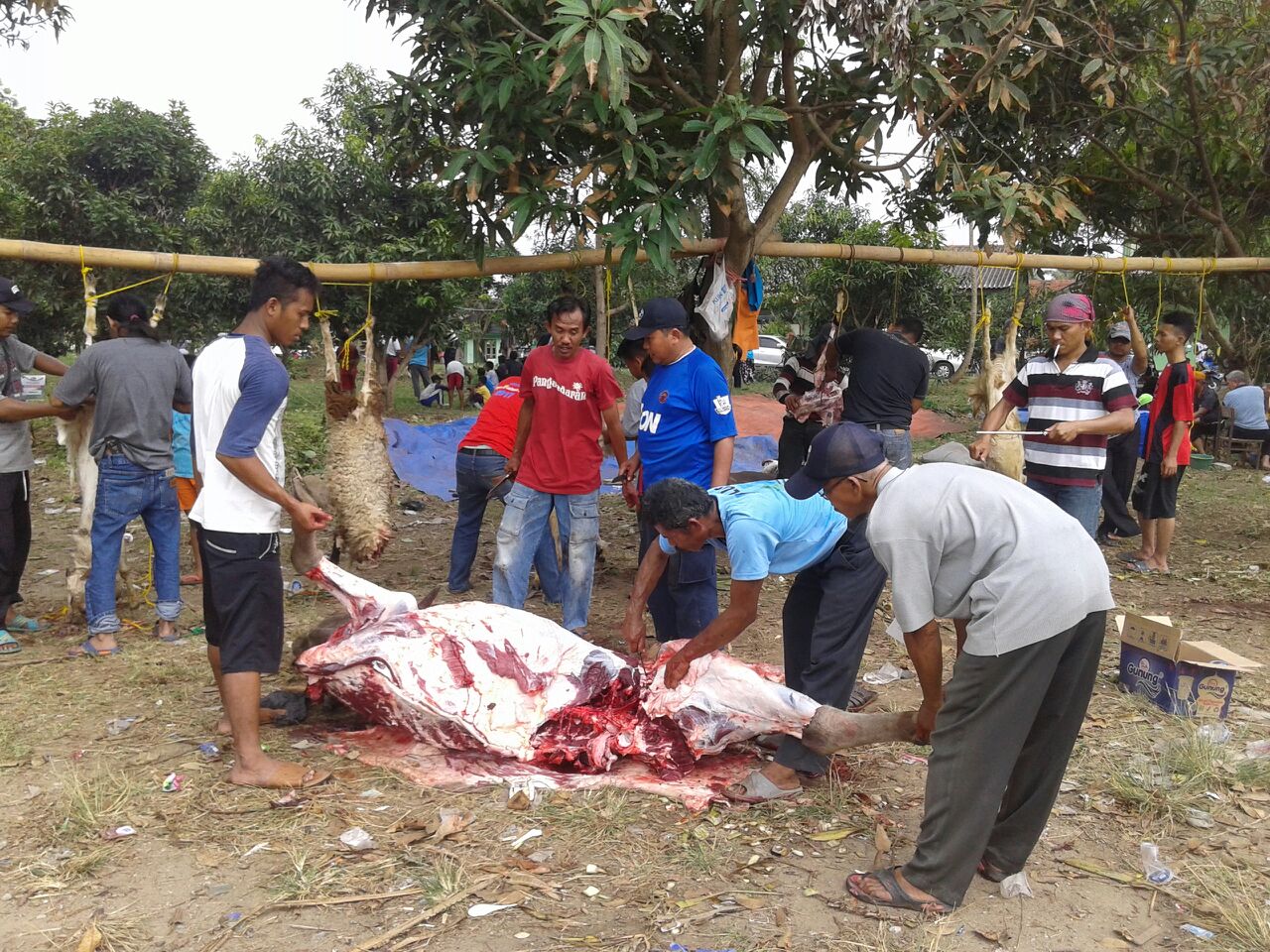 Ke-25 hewan kurban tersebut dipotong secara serempak di halaman Kampus STIT yang berada di lingkungan Yayasan Al-Khairiyah Citangkil, Kota Cilegon, dan kemudian setelah dikemas sebanyak 1.500 paket yang langsung dibagikan kepada warga Al-Khairiyah dan masyarakat yang berada di sekitar yayasan tersebut.