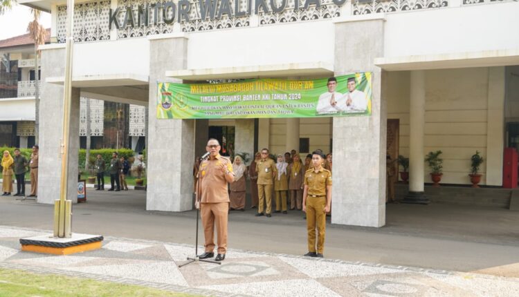 CILEGON – Wali Kota Cilegon Helldy Agustian memimpin apel pagi di halaman kantor Wali Kota Cilegon, Senin, 29 Juli 2024.