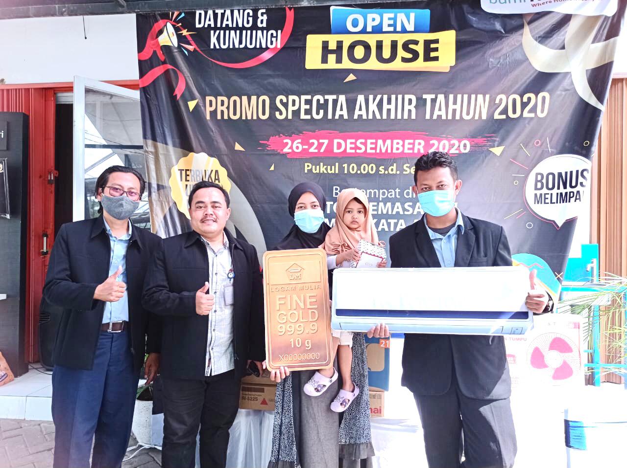 “Promo tersebut antara lain, KPR DP 0%, berhadiah langsung puluhan gram Emas Logam Mulia, AC, Hadiah Undian Electronik, selain itu bebas biaya KPR & SHM, tentunya dengan syarat dan ketentuan berlaku. Antusiasme pengunjung pada acara open house bisa terlihat dari banyaknya calon konsumen yang hadir pada saat acara berlangsung,” jelasnya, disela-sela kegiatan.