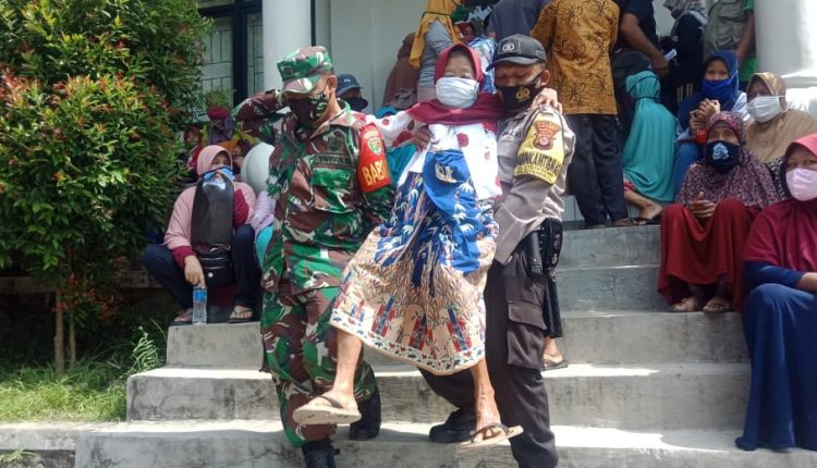 CILEGON – Aksi heroik anggota Kodim 0623 Cilegon berpangkat Sersan Kepala (Serka) Haryanto dan anggota Polres Cilegon Aipda Yudi Setiawan perlu di acungi jempol pasalnya keduanya membantu Nenek renta penerima Bantuan Sosial Covid-19 dengan menggendongnya.