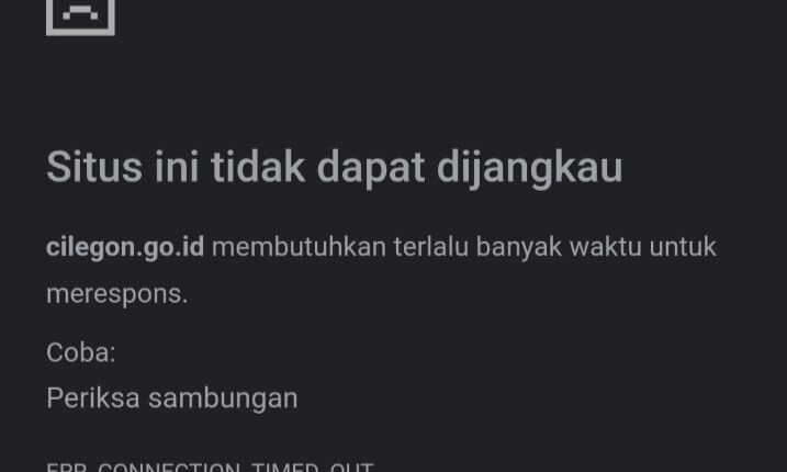 “www.cilegon.go.id membutuhkan terlalu banyak waktu untuk merespons. Coba: periksa sambungan ERR_Connection_Timed_Out,”tulis larangan pada saat membuka akun website resmi cilegon.go.id