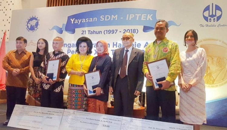 JAKARTA – Yayasan Sumber Daya Manusia dalam Ilmu Pengetahuan dan Teknologi (Yayasan SDM IPTEK) menganugerahkan Habibie Award kepada tiga Ilmuan Indonesia. Anugerah ini diberikan karena tiga Ilmuan tersebut dianggap berkontribusi dalam pengembangan ilmu pengetahuan, teknologi, dan kebudayaan di Indonesia.
