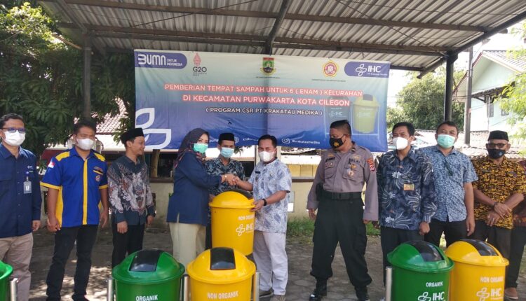 CILEGON– Sebanyak enam Kelurahan di Kecamatan Purwakarta terima bantuan corporate social responsibility (CSR) berupa tong sampah dari PT Krakatau Medika.