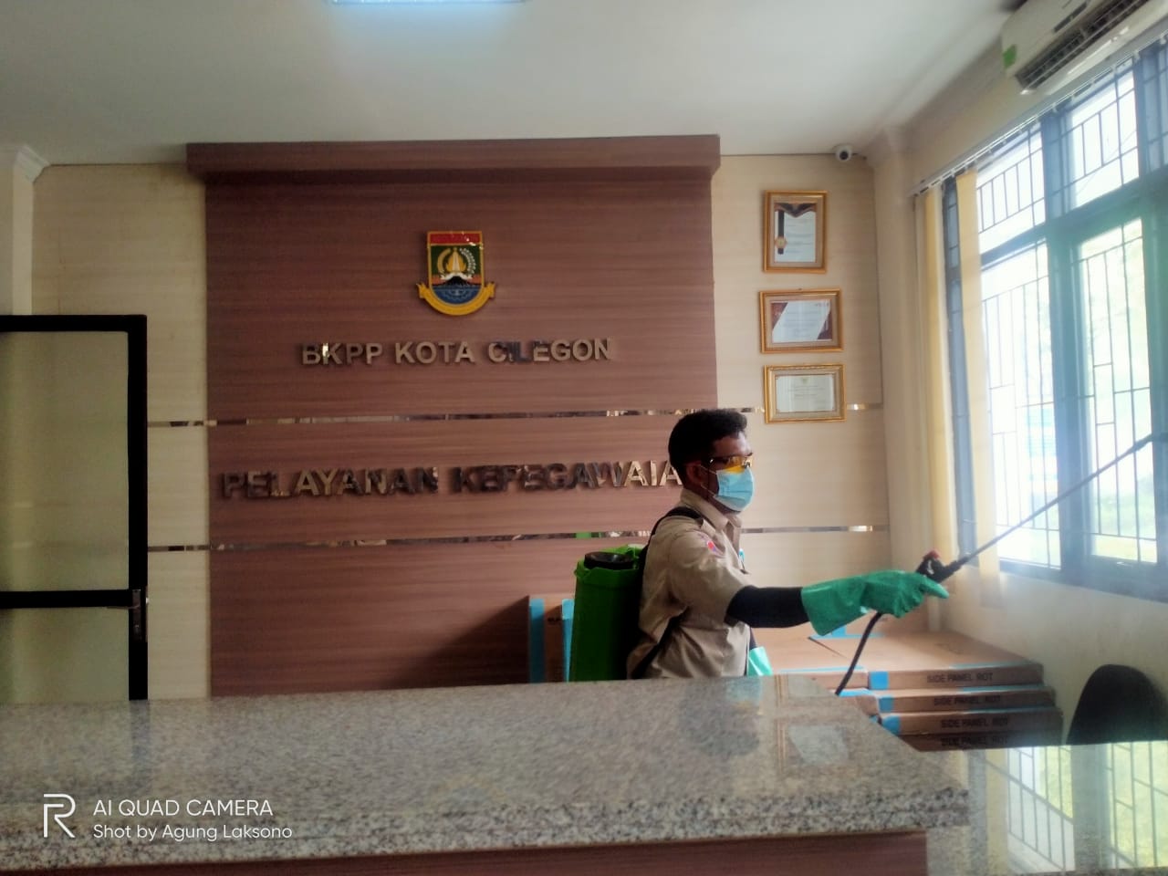 CILEGON – Sejumlah kantor instansi Pemerintah dan lingkungan warga dilakukan sterilisasi, sebagai langkah antisipasi penyebaran covid-19. Salah satu Kantor Pemerintah yang dilakukan sterilisasi, Senin, (11/1/2021) yaitu, Badan Kepegawaian, Pendidikan dan Pelatihan (BKPP) Kota Cilegon.