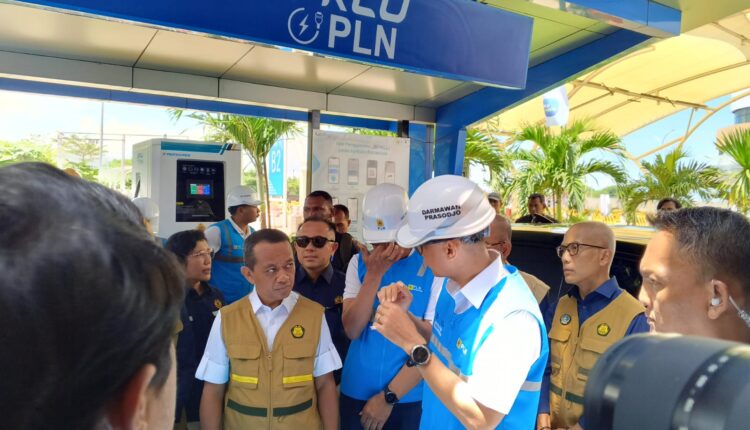 CILEGON -Direktur Utama PLN Persero, Darmawan Prasodjo, menerima kunjungan Menteri ESDM, Bahlil Lahadalia di Stasiun Pengisian Kendaraan Listrik Umum (SPKLU) Pelabuhan Eksekutif Merak, Kamis (13/3/2025).