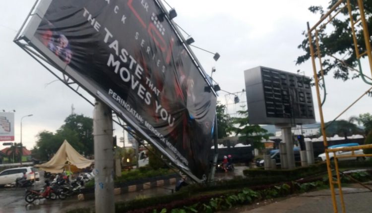 Angin Kencang Tumbangkan Papan Reklame Milik PT Davis Jaya di Gerbang JLS Cilegon