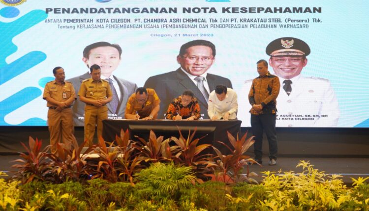 Setelah menempuh perjalanan panjang, akhirnya digelar penandatanganan Memorandum of Understanding (MoU) yang dilakukan langsung oleh orang nomor satu di 2 perusahaan raksasa Nasional, yakni PT Krakatau Steel (KS) Tbk dan PT Chandra Asri Petrochemical (CAP) Tbk dengan Pemerintah Kota (Pemkot) Cilegon tentang Pembangunan Pelabuhan Warnasari di The Royale Krakatau Hotel Cilegon, Selasa (21/3).