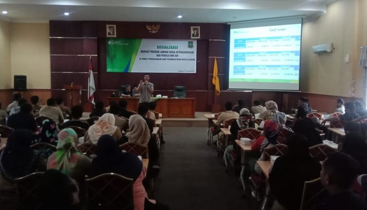 Hal itu disampaikan Kepala BPJS Ketenagakerjaan Cabang Cilegon Masbuki di sela – sela sosialisasi manfaat program Jaminan Sosial Ketenagakerjaan kepada ratusan pegawai honorer di lingkup Dinas Perdagangan dan Perindustrian Kota Cilegon yang digelar di Aula Setda. Selasa (16/7).