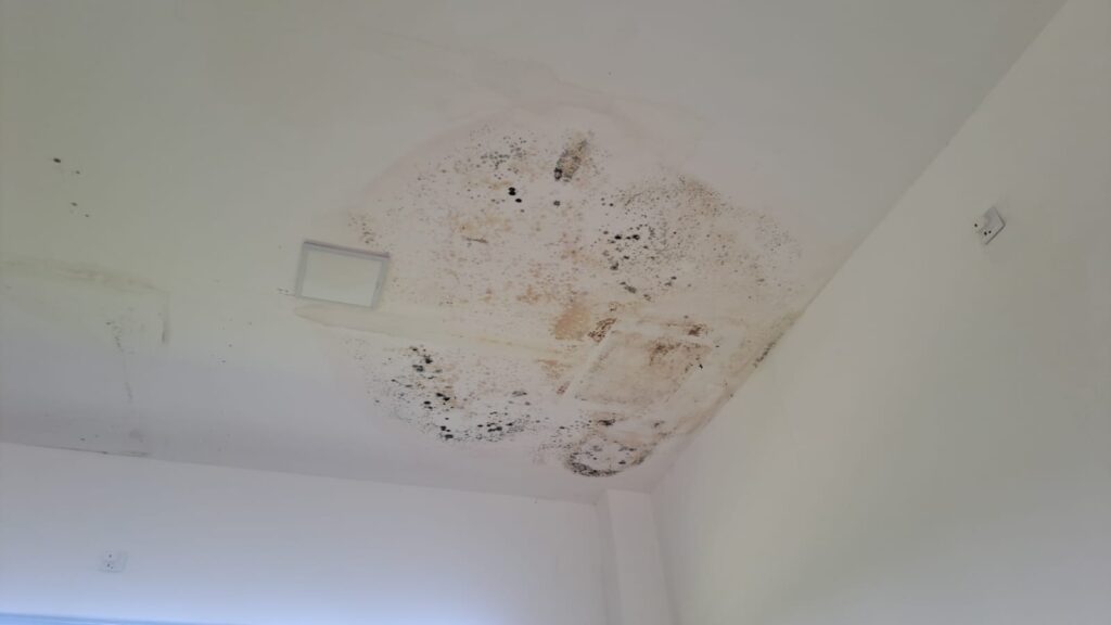 Kebocoran tersebut diduga dari toilet dari lantai dua yang tidak mengalir semestinya sehingga air menetes ke aula Kelurahan dan satu ruangan pelayanan.