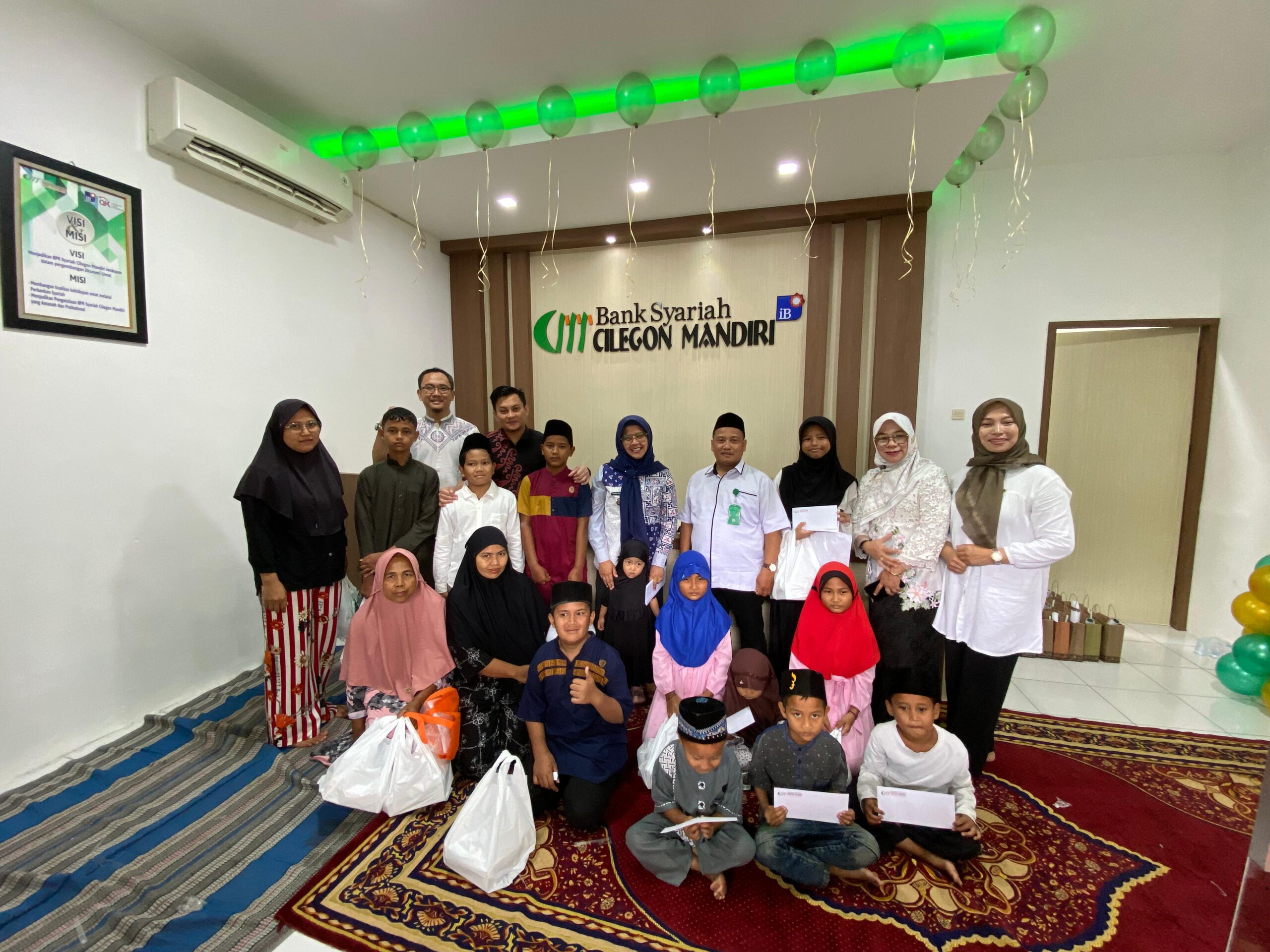 CILEGON – PT Bank Pembiayaan Rakyat Syariah Cilegon Mandiri (BPRSCM) menggelar santunan bagi anak yatim sebelum peresmian kantor barunya untuk masyarakat di sekitar Lingkungan Pasar Kelapa.