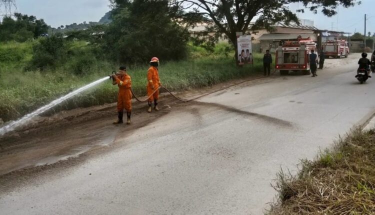 “Guna menyiapkan jalur mudik 2024 Dinas Pemadam Kebakaran Kota Cilegon melakukan penyemprotan jalan lingkar selatan untuk membersihkan ruas jalan yang dipenuhi oleh ceceran pasir yang memungkinkan sangat mengganggu kenyamanan dan keselamatan pengguna jalur Lingkar Selatan,” tulis akun tersebut.