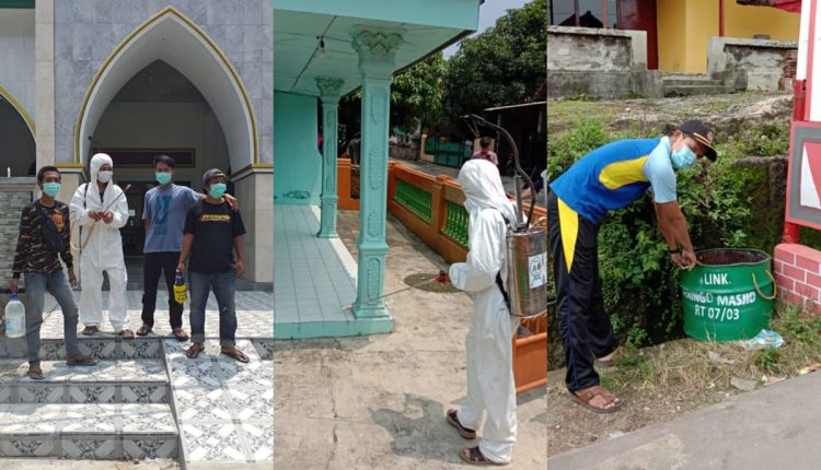 Cegah Corona, Pemuda Deringo Citangkil Semprotkan Desinfektan ke Pemukiman