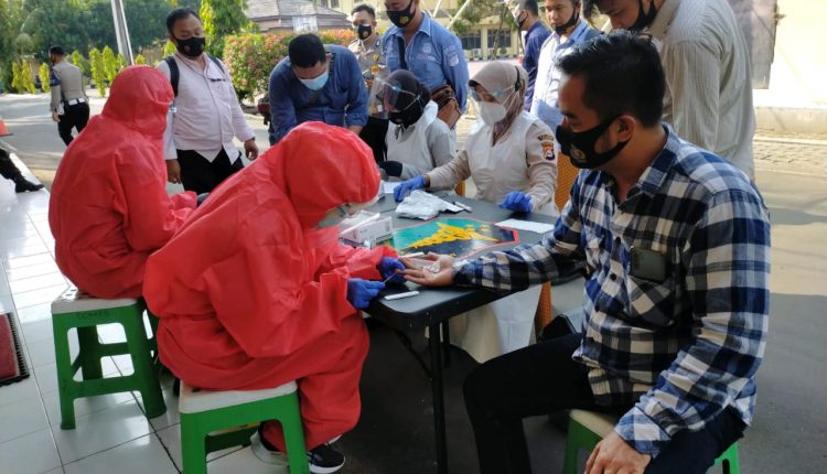 CILEGON – Guna memutus mata rantai penyebaran Covid-19, di internal Polres, baik personel, ataupun Aparatur Sipil Negara (ASN). Polres Cilegon lakukan pemeriksaan rapid test, di Klinik Urdokes Polres Cilegon.
