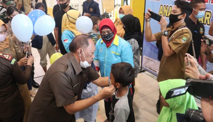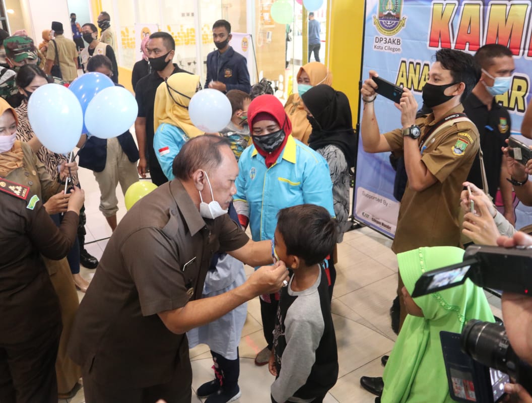 CILEGON – Pemerintah Kota Cilegon menggelar acara Kampanye Anak Pinter Pakai Masker yang berlokasi di Cilegon Center Mall, Selasa (23/06/2020).