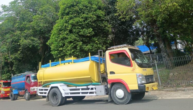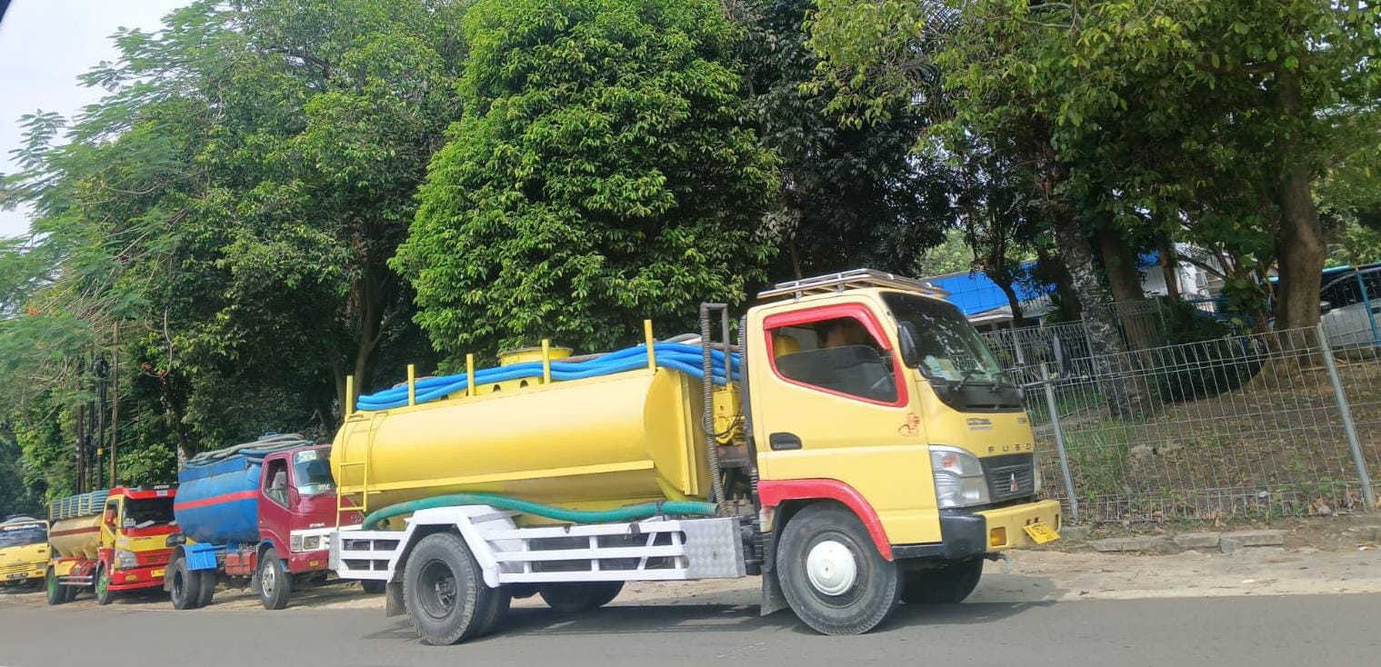 CILEGON – Deretan truk tangki sedot WC berbaris di atas bahu jalan persimpangan depan pusat perbelanjaan Transmart daerah Sumampir Kelurahan Kebondalem Kecamatan Purwakarta Kota Cilegon, sedari pagi hingga mulai dari jam 6.00 pagi hingga pukul 17.00 sore mereka di situ.