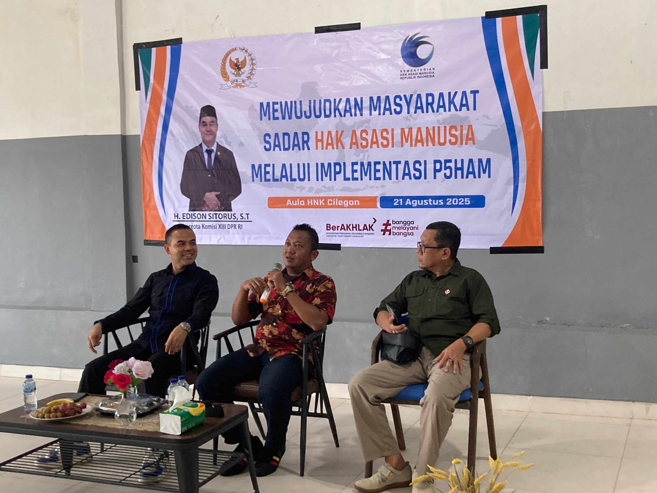 CILEGON – Kantor Wilayah Kementerian Hak Asasi Manusia (Kemenham) Banten bersama anggota Komisi XIII DPR RI, Edison Sitorus, menggelar kegiatan implementasi Program Penilaian Pelaksanaan Penghormatan, Perlindungan, Pemenuhan, Penegakan, dan Pemajuan Hak Asasi Manusia (P5HAM) bagi masyarakat di Kota Cilegon, Kamis (21/8/2025).