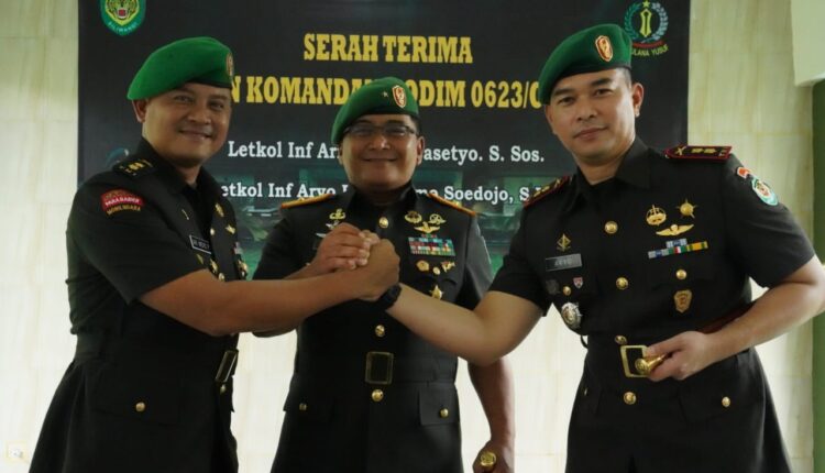 CILEGON – Komandan Korem (Danrem) 064/Maulana Yusuf Brigjen TNI Tatang Subarna memimpin langsung upacara serah terima jabatan (Sertijab) Komandan Kodim 0623/Cilegon dari pejabat lama Letkol Inf Ari Widyo Prasetyo kepada Letkol Inf Aryo Priyoutomo Soedojo serta tradisi satuan Korem 064/MY.