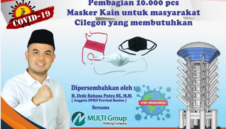 CILEGON – Anggota DPRD Banten, Dede Rohana Putra bersama Multi Group Holding Company akan membagikan 10.000 masker kain gratis kepada warga Banten, khususnya di Kota Cilegon, guna upaya menghindari pencegahan dan penularan virus corona atau Covid-19.