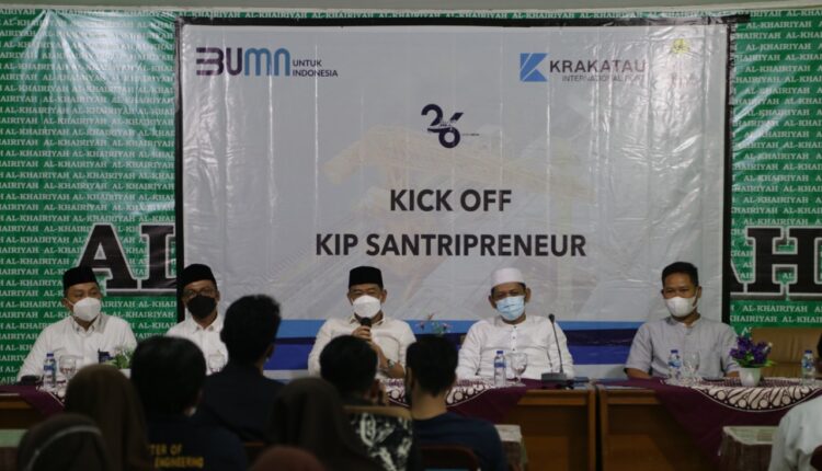 CILEGON – Para santri menerima pembekalan ilmu Enterpreneur yang diselenggarakan oleh PT. Krakatau International Port (KIP) dalam rangka merayakan HUT ke-26 tahun, bertempat di Auditorium Kampus Al-Khairiyah, Jum’at (25/02/2022).
