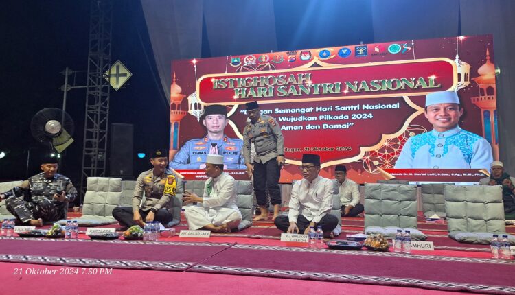CILEGON – Kepolisian Resort (Polres) Cilegon menggelar Istigosah dalam rangka memperingati Hari Santri Nasional, Senin 21 Oktober 2024 malam. Kegiatan yang dihadiri Penjabat Sementara (Pjs) Wali Kota Cilegon Nana Supiana itu mengangkat tema Dengan Semangat Hari Santri Kita Wujudkan Pilkada (Pemilihan Kepala Daerah) 2024 Aman dan Damai.
