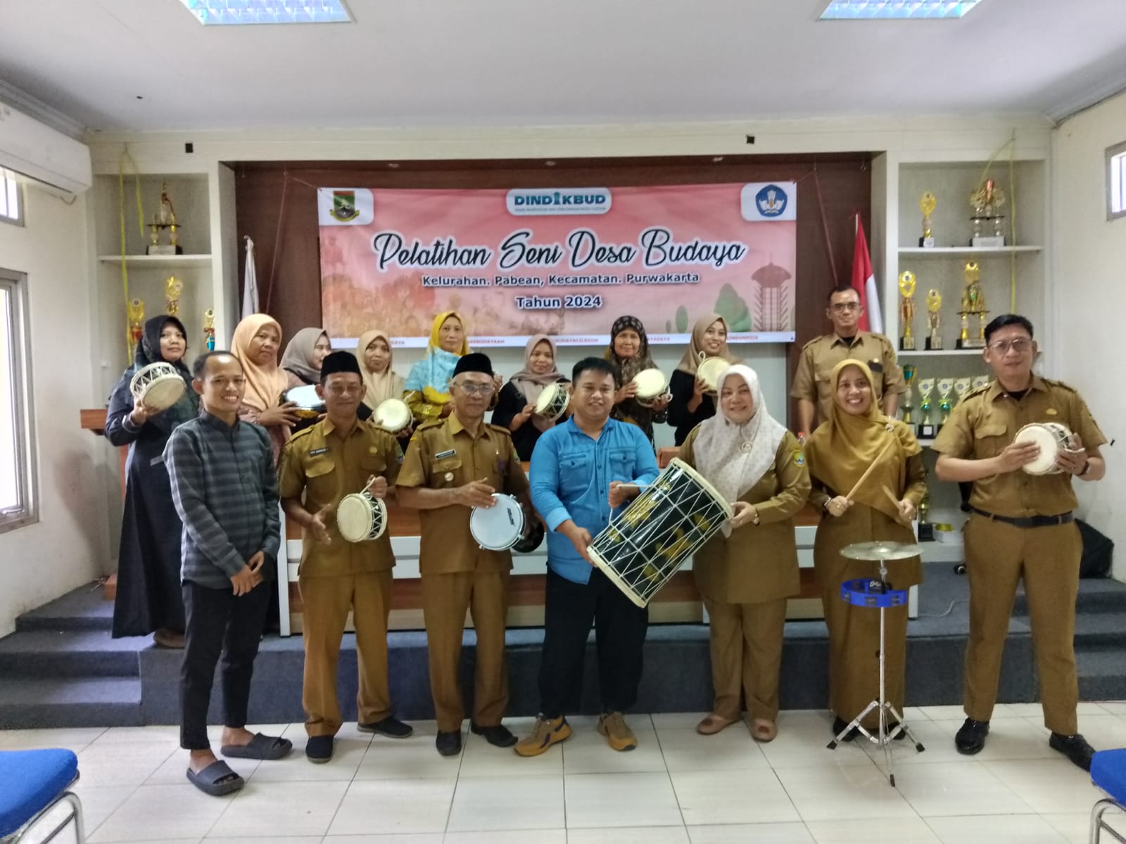 Kali ini Kegiatan Pelatihan Seni Desa Budaya di buka oleh Kepala Bidang Kebudayaan Evawarni di dampingi Lurah Pabean Ahmad Buhori dan Pengurus Kelompok Kebudayaan Kelurahan Pabean di Aula Kelurahan Pabean, Selasa, (21/5/2024).