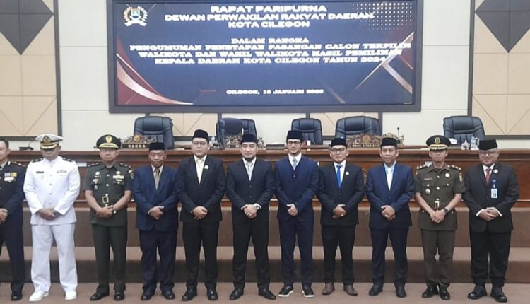 Pada rapat paripurna yang digelar, Senin (13/1/2025) di ruang rapat paripurna itu, Dewan Perwakilan Rakyat Daerah (DPRD) Kota Cilegon resmi mengumumkan pasangan Robinsar-Fajar sebagai pasangan Wali Kota dan Wakil Wali Kota Cilegon yang dipimpin Ketua DPRD Cilegon, Rizki Khairul Ichwan.