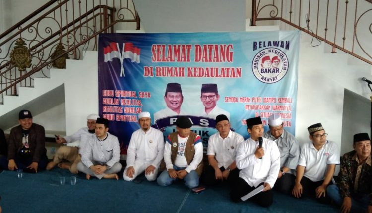 CILEGON – Ratusan Relawan Pemenangan Prabowo-Sandi berkumpul di Sekretariat Persaudaraan alumni 212 yang beralamat di Jalan Lingkar Selatan, Link Ciberko, Kelurahan Cikerai, Kecamatan Cibeber, Kota Cilegon, Sabtu (13/10/2018) Sore.
