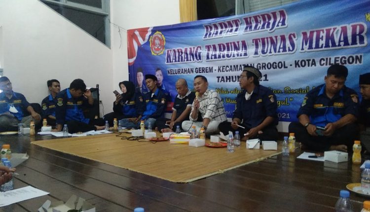 CILEGON – Guna menyusun program kerja yang akan dilaksanakan Karang Taruna Gerem, Kecamatan Grogol menggelar rapat kerja (raker).
