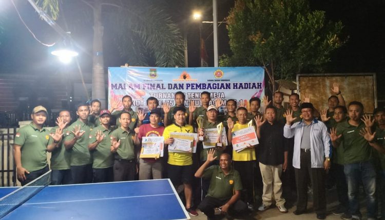 CILEGON – Gelaran turnamen tenis meja dalam rangka memeriahkan Hari Ulang Tahun (HUT) RI ke -75 dan HUT (Pagem) Penggemar Musik Melayu ke 1 di Kelurahan Tamanbaru, Kecamatan Citangkil Kota Cilegon berlangsung meriah dan sukses.