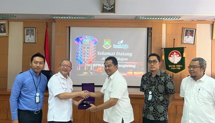 Kunjungan diterima Kepala Bidang Perbendaharaan Badan Pengelolaan Keuangan, Pendapatan dan Aset Daerah (BPKPAD) Kota Cilegon Noppy Kusuma, didampingi Kepala Bidang Anggaran BPKPAD Kota Cilegon Wisnu Wahyu Wibowo beserta Manager Komersial Bank BJB Cabang Cilegon Pradhiesa Putra.