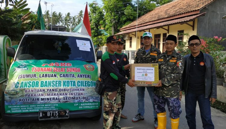 CILEGON – PC GP Ansor dan Kasat Korcab Banser Kota Cilegon memberikan bantuan logistik kepada para korban bencana tsunami Selat Sunda pada Sabtu (22/12/2018) malam.