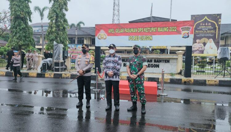 CILEGON– Jelang arus mudik lebaran 2022 Polres Cilegon melakukan inspeksi pasukan pada Apel Gelar Pasukan Operasi Maung 2022 di depan Mapolres Cilegon, Jumat, (23/4/2022).