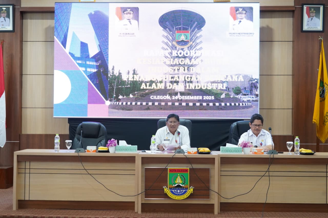 CILEGON – Pemerintah Kota Cilegon melalui Badan Penanggulangan Bencana Daerah Kota Cilegon menggelar Rapat Koordinasi Kesiapsiagaan Dunia Industri dalam Penanggulangan Bencana Alam dan Industri yang berlangsung di Aula Setda II Kota Cilegon, Rabu 24 Desember 2025.