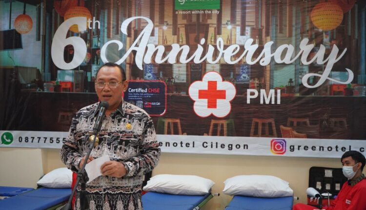 CILEGON – Wali Kota Cilegon, Helldy Agustian menghadiri peringatan Hari Ulang Tahun (HUT) ke 6 Greenotel Cilegon dengan mengadakan donor darah dan santunan anak yatim yang berlokasi di Lantai 2 Greenotel Cilegon, Kamis (11/11/2021).