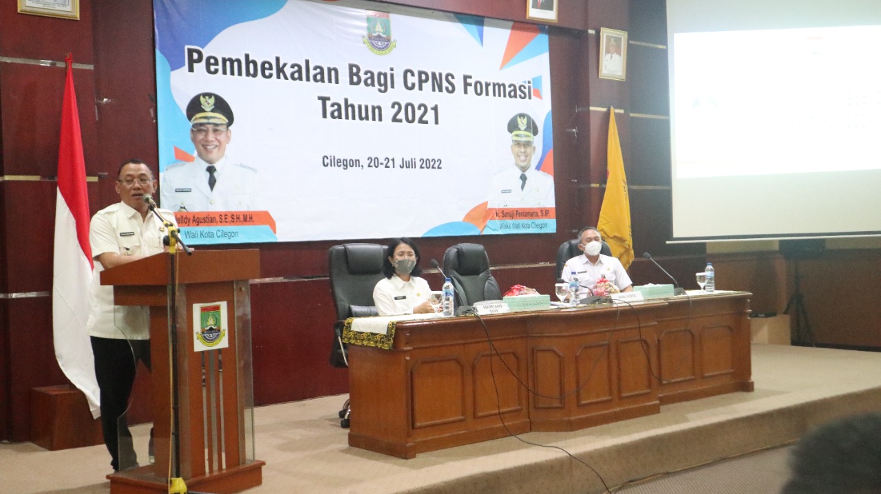 CILEGON – Terdapat sebanyak 69 Calon Pegawai Negeri Sipil (CPNS) Formasi 2021 di Lingkungan Pemerintah Kota Cilegon mengikuti kegiatan Pembekalan sebelum memasuki masa kerja dan sebagai syarat pengangkatan menjadi Pegawai Negeri Sipil (PNS) yang berlangsung di Aula Setda II Kota Cilegon, Rabu (20/07/2022).