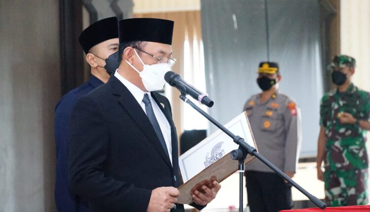 CILEGON – Pemerintah Kota Cilegon menggelar acara Pelantikan dan Pengambilan Sumpah Janji Jabatan Pimpinan Tinggi Pratama Tahun 2022 yang berlokasi di Aula Dinas Komunikasi Informatika Sandi dan Statistik Kota Cilegon, Senin (21/02/2022).