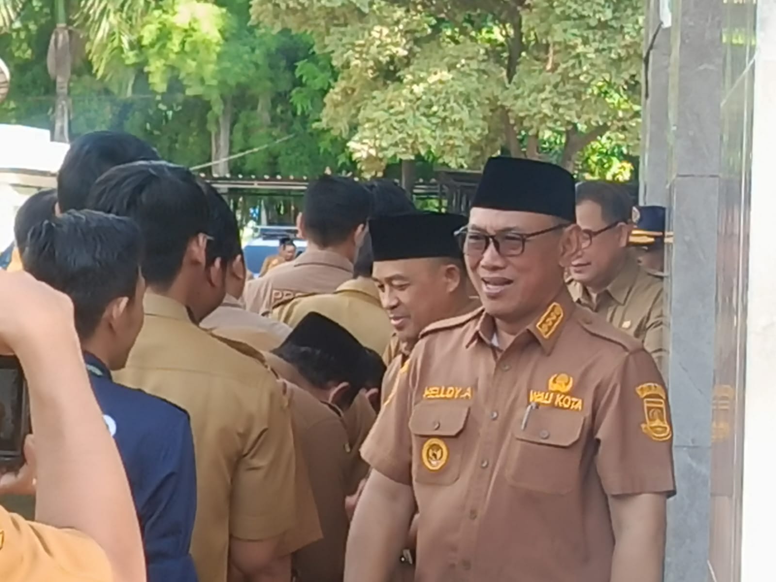 Helldy Agustian, yang juga merupakan Bakal Calon Walikota dalam Pilkada 2024, terlihat memakai peci berwarna hitam, senada dengan Sanuji Pentamarta, yang juga berencana mencalonkan diri sebagai Walikota, yang tampil dengan peci serupa.