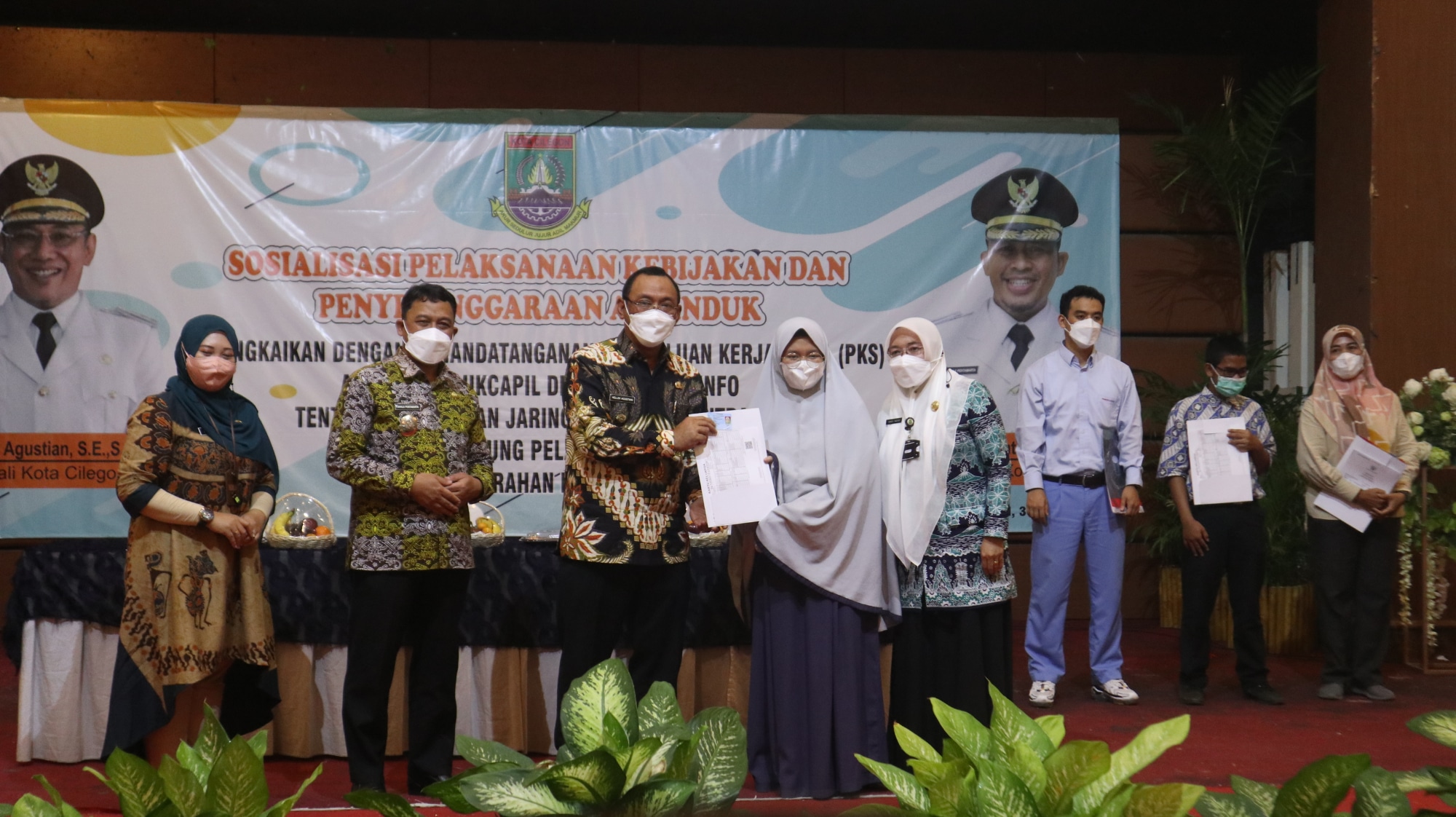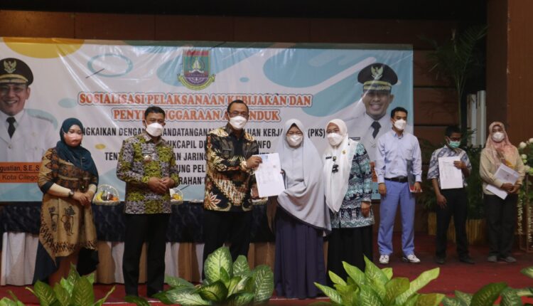 CILEGON – Pemerintah Kota Cilegon menggelar acara sosialisasi pelaksanaan kebijakan dan penyelenggaraan adminduk yang dirangkaikan dengan Penandatanganan Perjanjian Kerja Sama (PKS) antara Disdukcapil dengan Diskominfo tentang Penyediaan Jaringan Internet/Intranet untuk Mendukung Pelayanan adminduk di 43 Kelurahan Kota Cilegon, Kamis (31/03/2022).