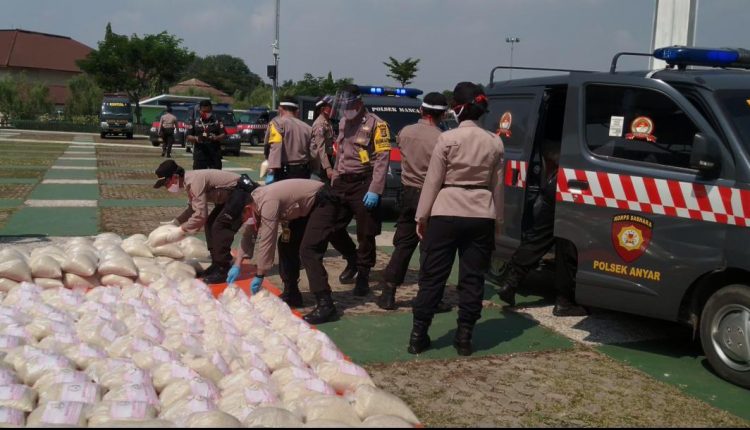 HUT Bhayangkara Ke-74, Polres Cilegon Bagikan 11 Ton Beras Kepada Warga Terdampak Covid-19
