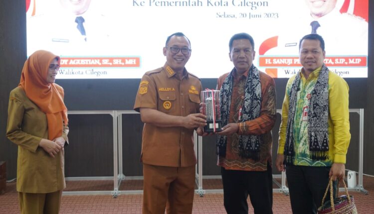 CILEGON – Walikota Cilegon, Helldy Agustian, dan sejumlah Kepala Dinas Kota Cilegon dengan hangat menyambut kunjungan puluhan rombongan studi tiru dari Kabupaten Tapin, Kalimantan Selatan ke Pemerintah Kota Cilegon.