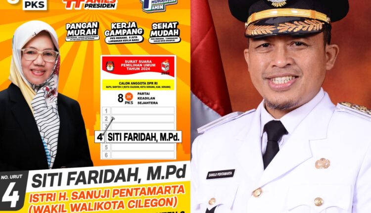 CILEGON – Istri Wakil Walikota Cilegon Sanuji Pentamarta, Siti Faridah terjun ke dunia politik dengan menjadi calon anggota legislatif (caleg) DPR RI Dapil Banten II yang meliputi Kota Cilegon, Kabupaten Serang dan Kota Serang.