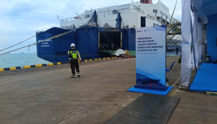 CILEGON — Pemerintah dan pemangku kepentingan industri resmi meluncurkan jalur logistik Kereta Api Barang dan Kapal Ro-Ro atau Roll-on/Roll-off di Dermaga 7.3 Pelabuhan Cigading milik PT Krakatau Bandar Samudra (KBS) Kota Cilegon, Selasa (18/11/2025).