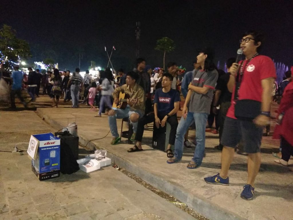 Tak berhenti menjual baju mantan, mereka menggalang donasi dengan akustikan di Alun-alun Cilegon. Pada Sabtu (1/9/2018) malam kegiatan tersebut berlangsung.