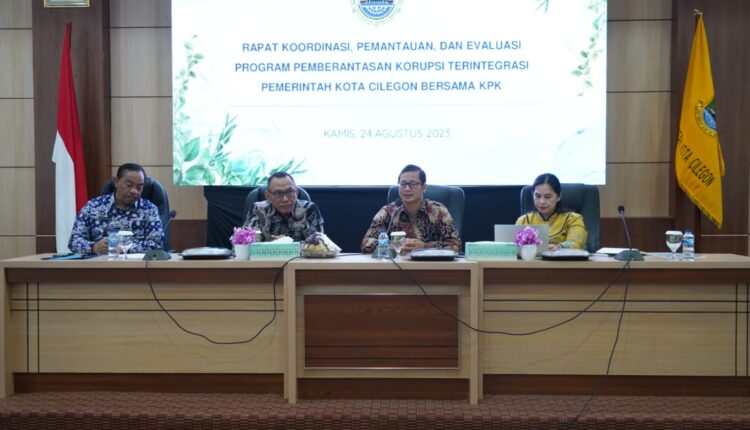 CILEGON – Komisi Pemberantasan Korupsi (KPK) menggelar rapat koordinasi, pemantauan dan evaluasi program pemberantasan korupsi terintegrasi, di Aula Setda Pemkot Cilegon, Kamis, 24 Agustus 2023.
