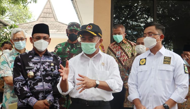 CILEGON – Menteri Koordinator Bidang Pembangunan Manusia dan Kebudayaan (Menko PMK) Muhadjir Effendy mengunjungi Kota Cilegon dan diterima oleh Walikota Cilegon, Helldy Sanuji dan Wakil Walikota Cilegon, Sanuji Pentamarta, Kunjungan Menteri Republik Indonesia ini dalam rangka Pemberlakuan Pembatasan Kegiatan Masyarakat berskala Mikro yang berlokasi di Lingkungan Kecamatan Jombang, Jum’at (12/03/2021 ).