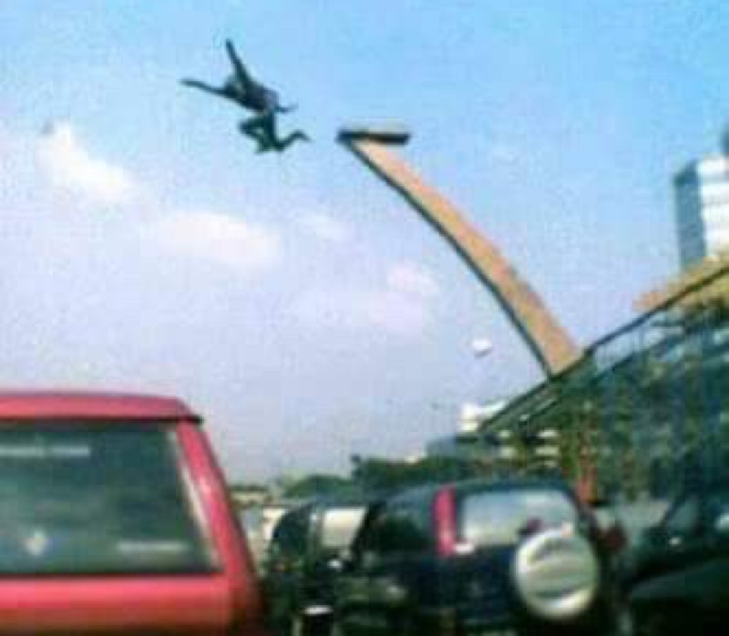 2. Postingan foto Tugu Pancoran, dimana patung orang dalam foto tersebut tampak meloncat karena adanya gempa.