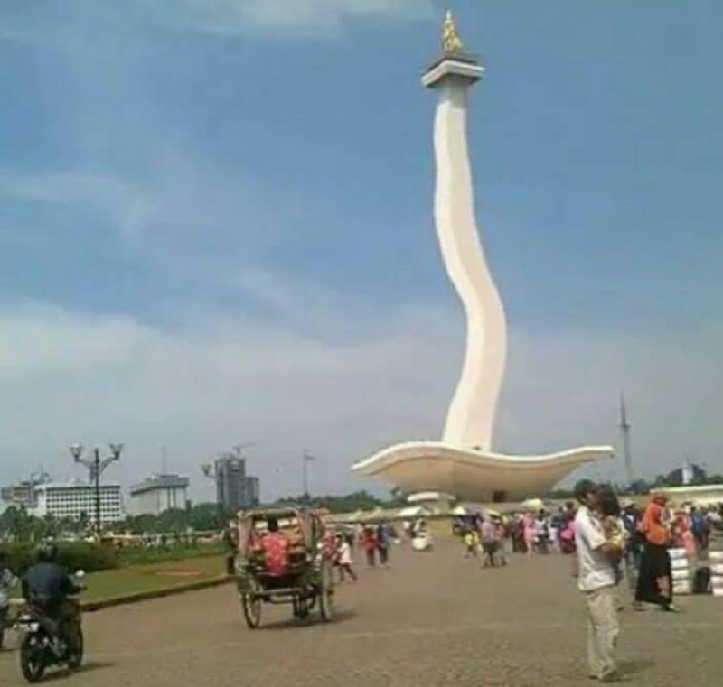 4. Postingan foto Monas yang berkeluk bak keris dan dikatakan akibat gempa.