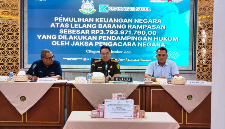 CILEGON – Kejaksaan Negeri (Kejari) Cilegon melalui fungsi Jaksa Pengacara Negara (JPN) berhasil memulihkan keuangan negara senilai Rp3.793.971.790 yang berasal dari pengembalian hasil tindak pidana korupsi di Badan Pengelolaan Kesejahteraan PT Krakatau Steel (Bapelkes KS).