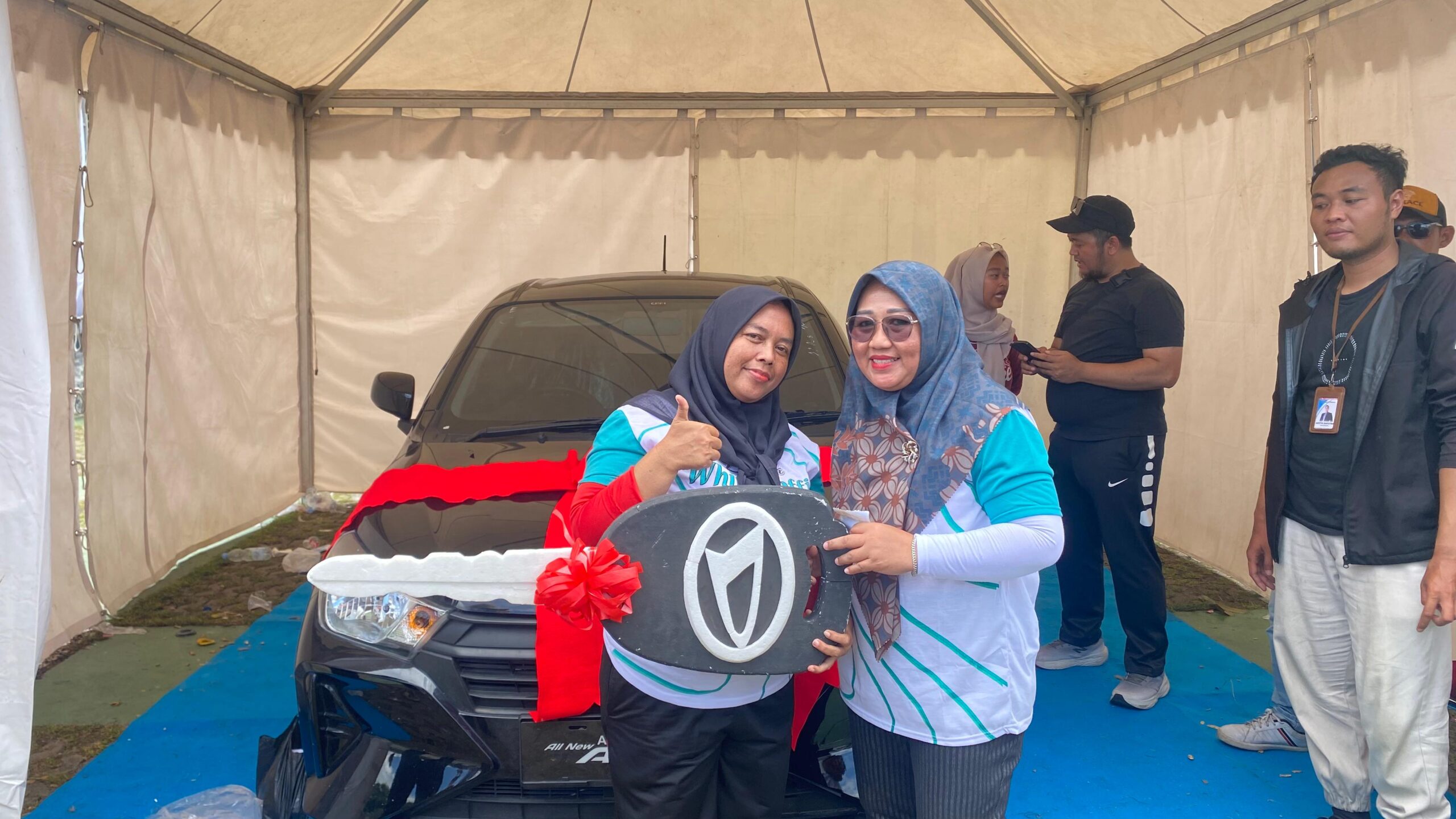 Momen paling mengharukan datang dari pemenang hadiah utama mobil, Sumarni (45), warga Citangkil.