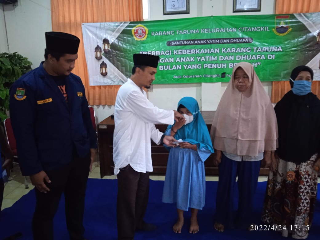 Seperti yang dilaksanakan pada Minggu, (24/4/2022) yang mana Karang Taruna tersebut menyalurkan bantuan uang tunai kepada anak yatim dan dhuafa yang digelar di Kelurahan Citangkil.